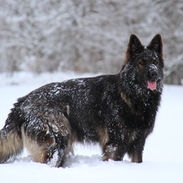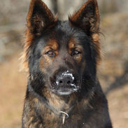 Dolly est une magnifique chienne fauve fortement charbonné.